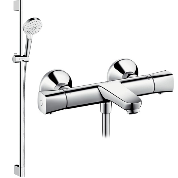 Комплект смесителя для ванны и душа Hansgrohe Ecostat Universal 13123000 с душевым гарнитуром Hansgrohe Crometta 26536400.