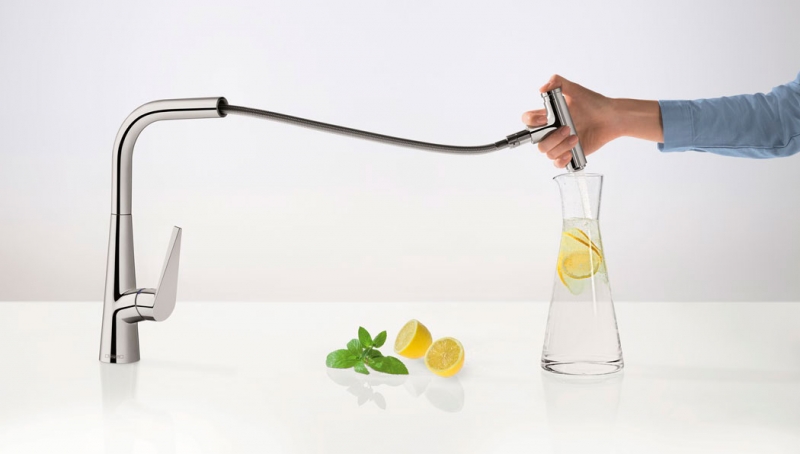 Смеситель для кухни Hansgrohe Talis Select M5115-H300 73853000 с выдвижным изливом, который удобно использовать для набора воды в различные емкости, мытья овощей либо габаритной посуды. Функциональный и стильный смеситель украсит интерьер любой современной кухни.