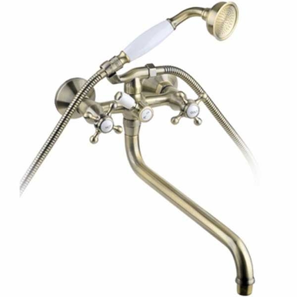 Двухвентильный смеситель с поворотным изливом, монтируемый в два отверстия. Имеет долгий срок эксплуатации за счет качественных деталей, неприхотлив в уходе. Дополнит любой интерьер в ретро стиле.