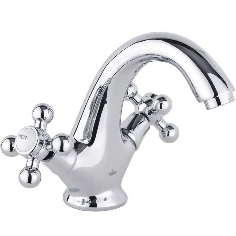 Двухвентильный смеситель с фиксированным изливом и аэратором, монтируемый в одно отверстие. Имеет долгий срок эксплуатации за счет качественных деталей, неприхотлив в уходе. Станет прекрасным дополнением ванной комнаты.