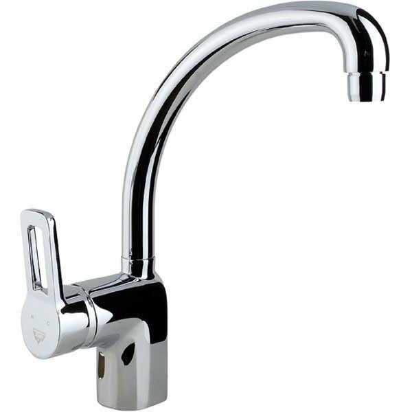 Однорычажный смеситель с поворотным изливом и аэратором, монтируемый в одно отверстие. Имеет долгий срок эксплуатации за счет качественных деталей, неприхотлив в уходе. Станет прекрасным дополнением кухни.