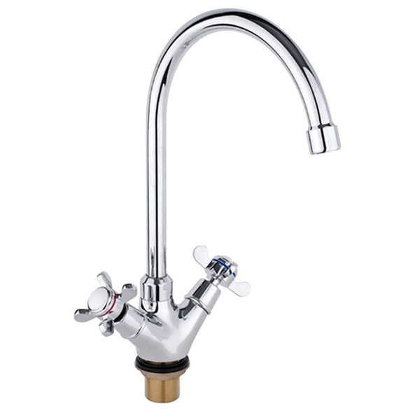 Смеситель с поворотным гибким изливом, лейкой и аэратором, монтируемый в одно отверстие. Имеет долгий срок эксплуатации за счет качественных деталей, неприхотлив в уходе. Станет прекрасным дополнением кухни.