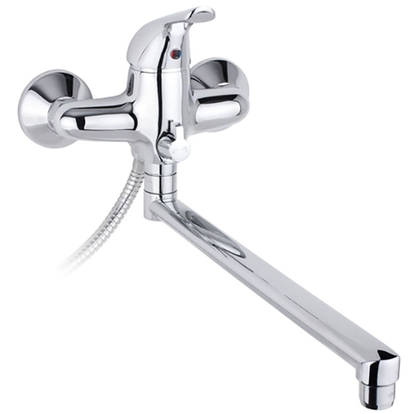 Однорычажный смеситель с поворотным изливом и аэратором, монтируемый в два отверстия. Имеет долгий срок эксплуатации за счет качественных деталей, неприхотлив в уходе. Дополнит любой интерьер в современном стиле.