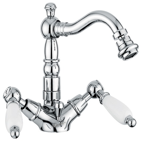 Смеситель Emmevi Deco Ceramic 121614 для биде. Двухвентильный, с донным клапаном, на одно отверстие. Цвет хром.