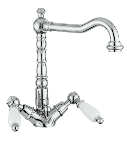 Смеситель Emmevi Deco Ceramic 121617 для кухни. Двухвентильный, на одно отверстие, с поворотным изливом. Цвет бронза.