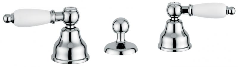 Смеситель Emmevi Deco Ceramic 121034 для биде. Двухвентильный, с донным клапаном, на три отверстия. Цвет хром.