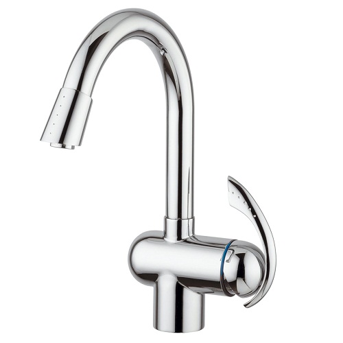 Смеситель Emmevi Ramses 72066 для кухни. Однорычажный, на одно отверстие, с извлекаемым разбрызгивателем и удлиненным краном. Цвет хром.