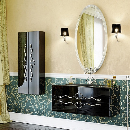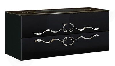 Подвесная тумба под раковину Aqwella Clarberg Due amanti 100 Due.01.10/BLK/CR черная глянцевая, с двумя выдвижными ящиками, с аккуратными и изящными хромированными ручками. Для использования в ванных комнатах с повышенной влажностью.