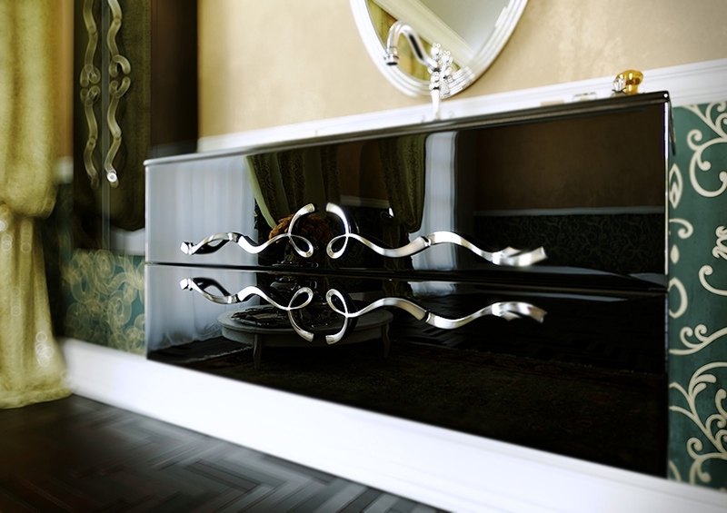 Подвесная тумба под раковину Aqwella Clarberg Due amanti 120 Due.01.12/BLK/CR черная глянцевая, с двумя выдвижными ящиками, с аккуратными и изящными хромированными ручками. Для использования в ванных комнатах с повышенной влажностью.