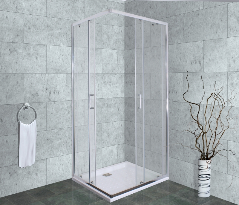 Раздвижные двери душевого уголка на бесшумных двойных роликах открываются комфортно с помощью 2х удобных ручек.