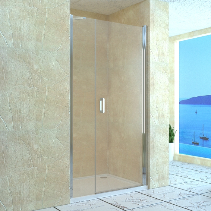 Стеклянная распашная душевая дверь в нишу RGW Leipzig LE-08 110 06120811-11. Универсальная установка открытия двери.