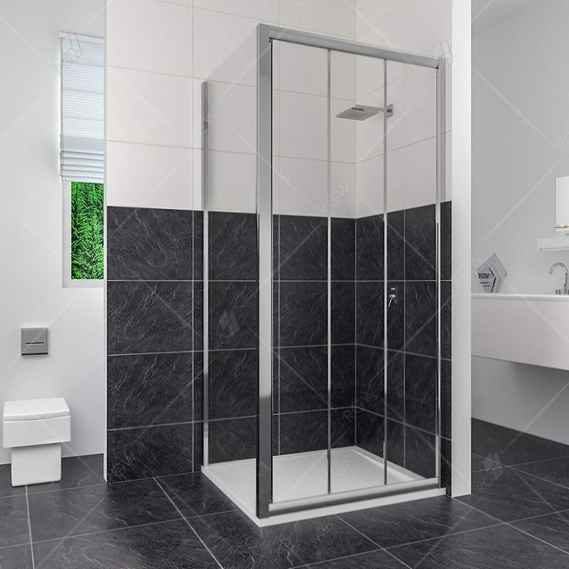 Квадратный стеклянный душевой уголок RGW Classik CL-30 90x90 04093099-11 с тройной раздвижной дверью и неподвижным боковым стеклом.