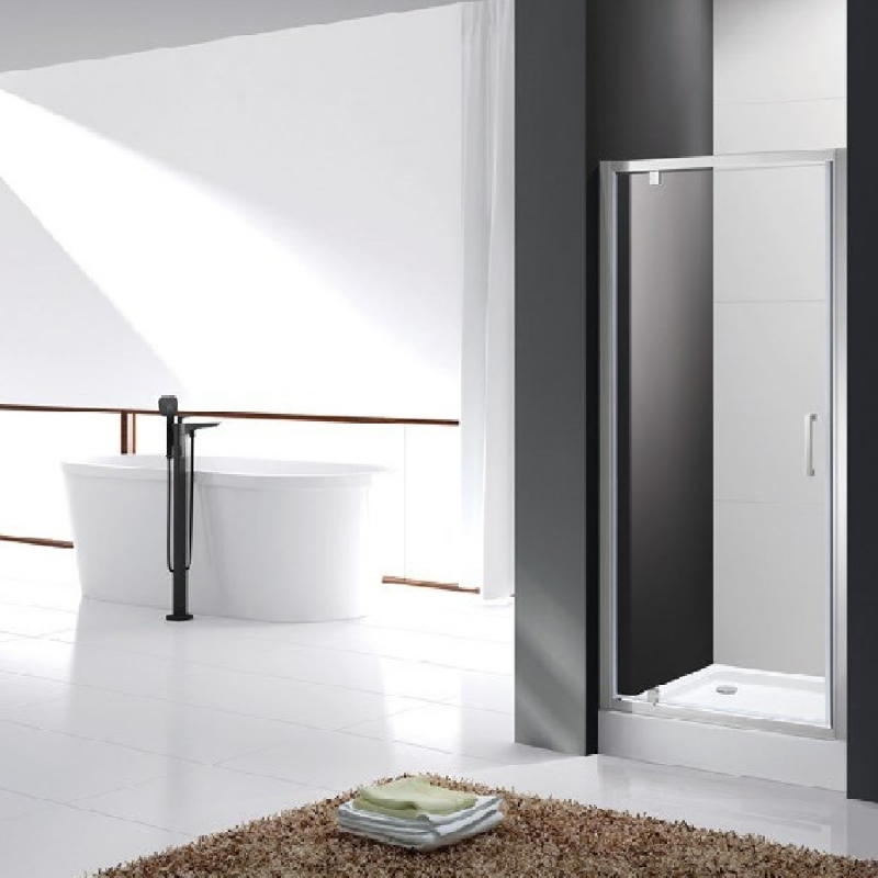 Полотно двери изготовлено из прозрачного закаленного и безопасного стекла толщиной 6 мм.