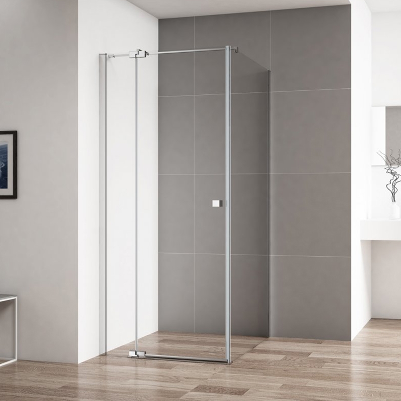 Душевой уголок с одной распашной дверкой с закаленным прозрачным стеклом толщиной 8 мм. Профиль выполнен из анодированного алюминия в цвете хром.