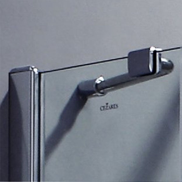 Распашная душевая дверь в нишу Cezares Verona с рифлеными полотнами из закаленного стекла и профилем из анодированного алюминия. Ширина может регулироваться за счет боковых профилей.
