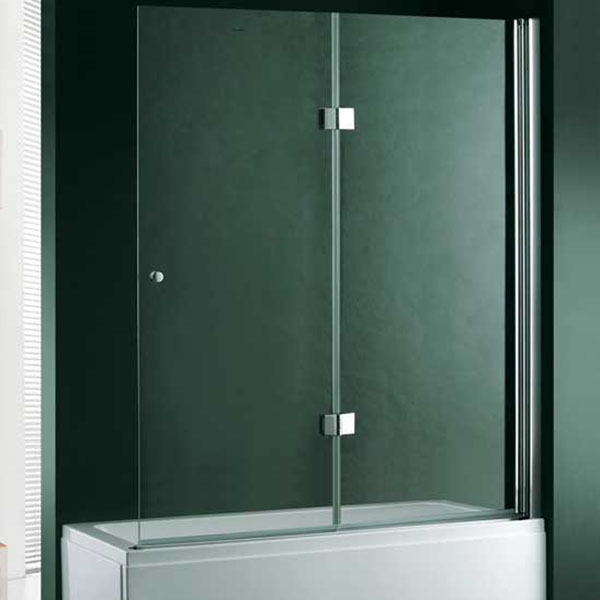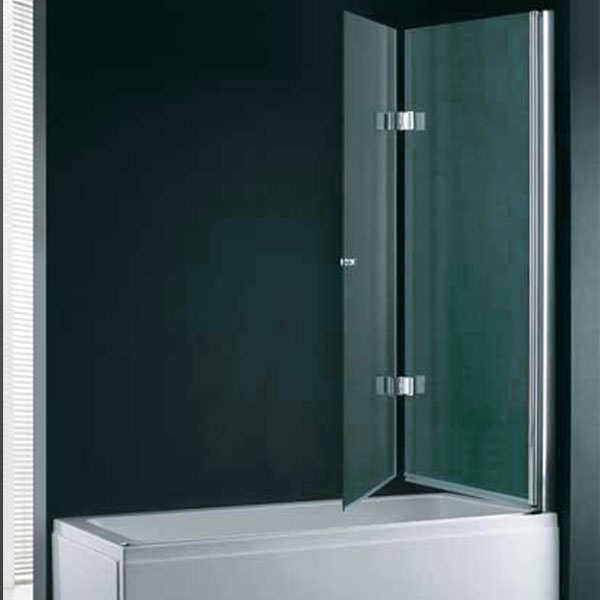 Складная двухсекционная шторка на ванну с минималистичным современным дизайном. Полотна изготовлены из рифленого закаленного стекла, профили из анодированного алюминия в исполнении хром.