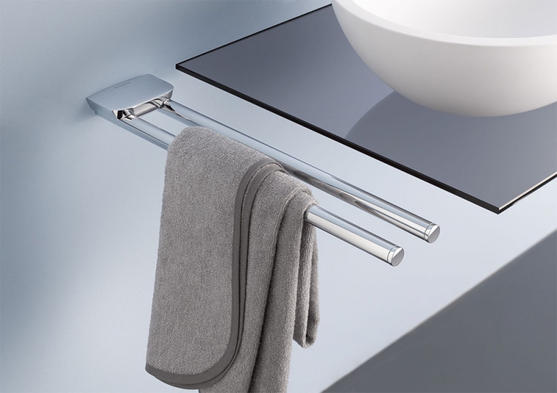 Полотенцедержатель Kludi Ambienta 5397705 двойной фиксированный в цвете хром отлично подойдет для ванных комнат с современным дизайном.
