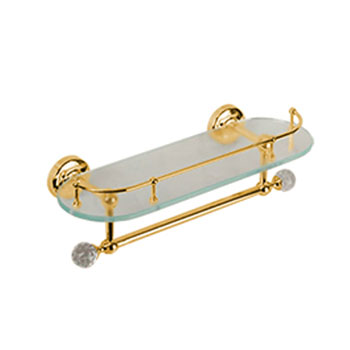 Полка стеклянная с галереей и полотенцедержателем длиной 36 см Migliore Amerida Swarovski ML.AMR-60.429 DO. Цвет золото.