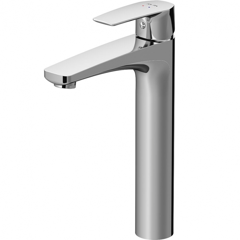 Высокий излив придает смесителю утонченный вид и идеально подойдет для раковины с глубокой чашей, а благодаря обширной зоне движения ручки управлять температурой воды еще проще.