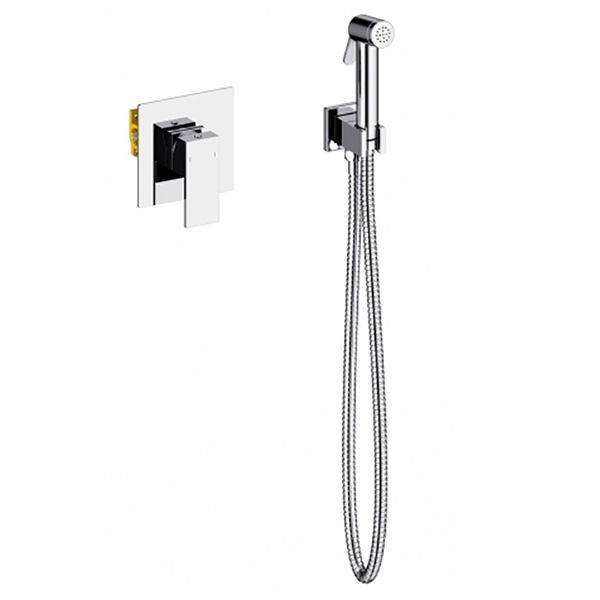 В комплекте поставки: смеситель (со скрытой частью), лейка, шланг, держатель, шланговое подключение.