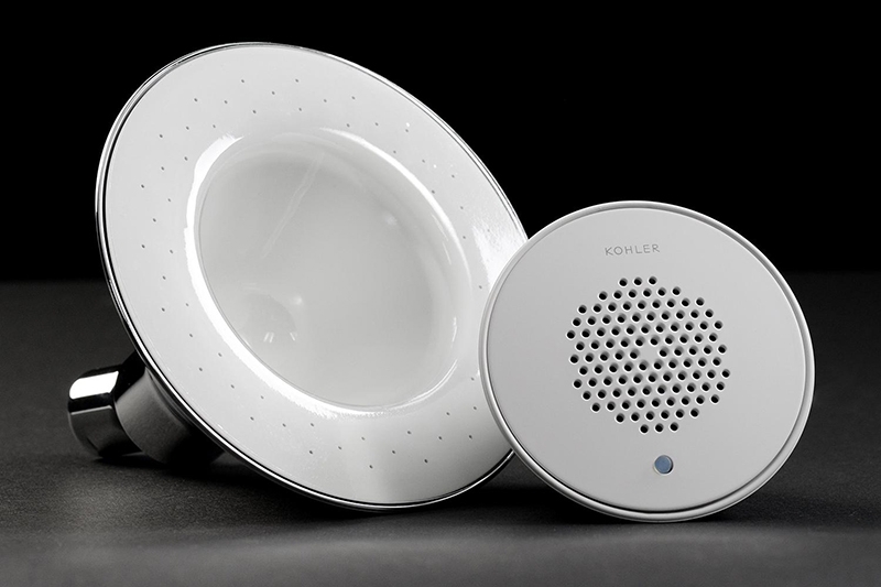 В комплекте поставки: душевой комплект (верхний душ, ручной душ со шлангом), динамик, подставка для динамика с док-станцией.
