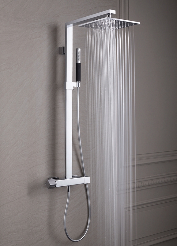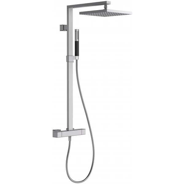 Душевая система Jacob Delafon Strayt E98321-CP с термостатическим смесителем, ручным душем и верхним тропическим душем.