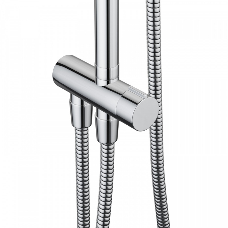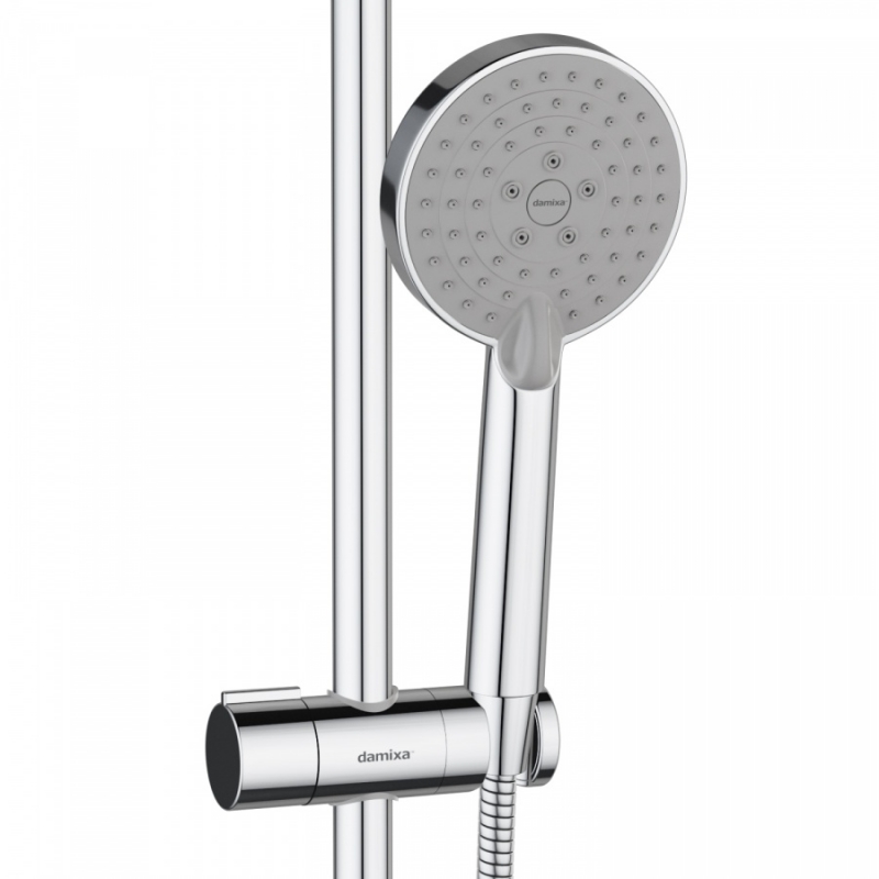 Душевая система Damixa Origin One 978100000. В набор входит верхний душ диаметром 200 мм, ручной душ диаметром 100 мм, 1 режим струи ручного душа, переключатель.