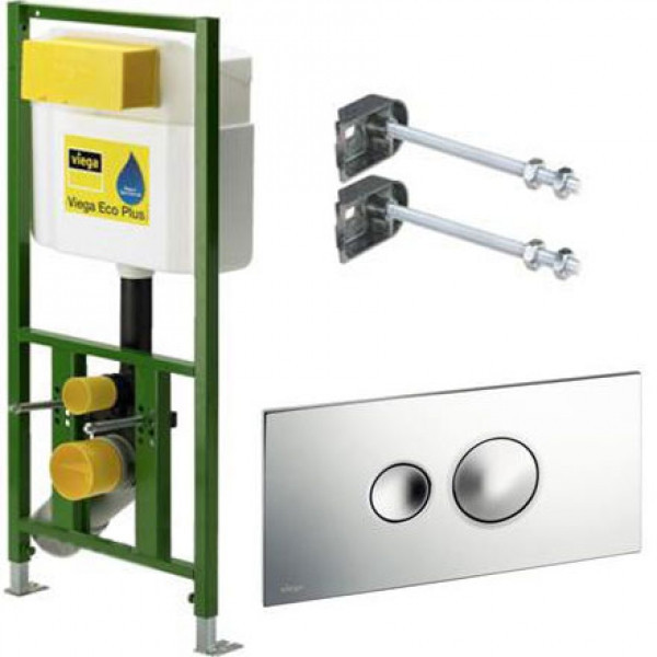 Монтажный комплект Viega Eco Plus 660321 для подвесного унитаза с бачком скрытого монтажа, а также клавишей смыва Visign for Style 10 596323 цвета хром.