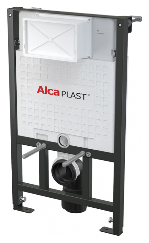 Инсталляция для унитазов AlcaPlast Sadromodul A101/850.Материал несущей конструкции - металл обработанный порошковой краской. Подвод воды к задней стенке бачка или сверху бачка с помощью монтажных отверстий G1/2. Монтажная глубина рукава регулируется от 20 до 95 мм. Монтажная глубина – 125 мм, со стоковым коленом – 160 мм. Объем смывного бачка 6/9 л. Самонесущая рама. Несущая способность 400 кг. Установленная система закрывается гипсокартонными листами и не нуждается в дополнительных крепёжных элементах. Конструкция полистирольной изоляции, предотвращает процесс конденсации на поверхности бачка и ослабляет вибрацию в строительной конструкции.