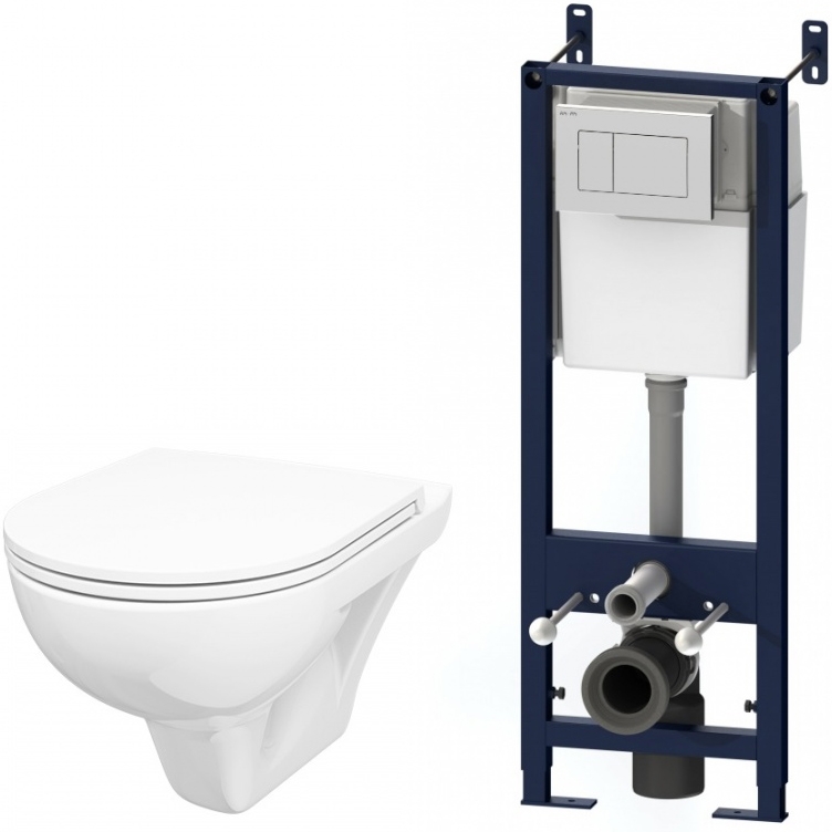 В комплекте поставки: инсталляция с клавишей, подвесной унитаз, сиденье, комплект креплений.