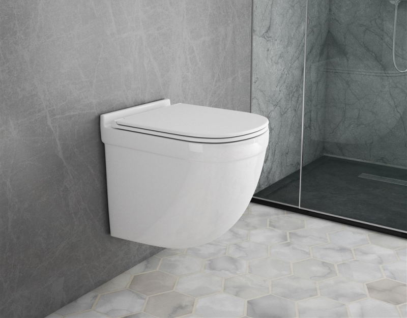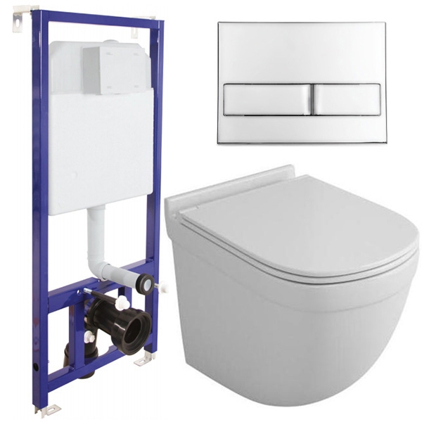 Подвесной безободковый унитаз Owl 1975 Eld OWLT190101 в комплекте с крышкой-сиденьем Soft Close и инсталляцией Berges Wasserhaus Novum L3 040213 с клавишей смыва хром.