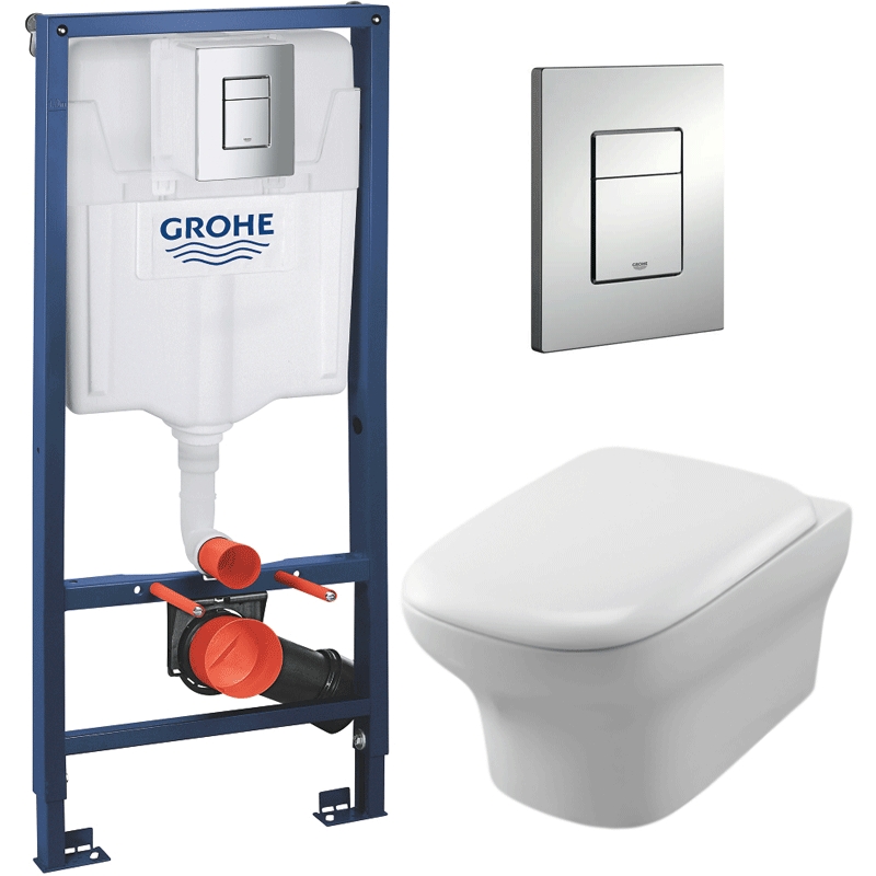 Комплект безободкового унитаза Jacob Delafon Vox EDM102-00 с инсталляцией Grohe Rapid SL 38772001.
