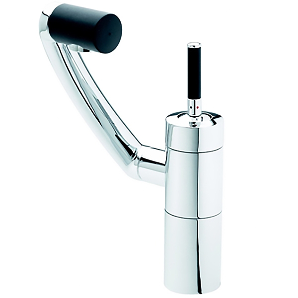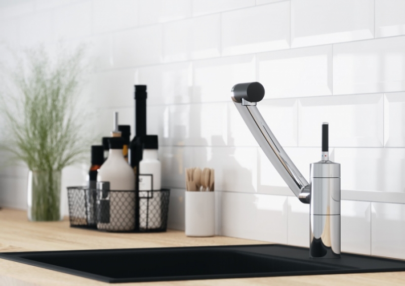Функциональный смеситель для кухонной мойки выполнен в ультрасовременном дизайне и украсит большинство кухонных интерьеров. Черные вставки превосходно дополняют стильный внешний вид модели.
