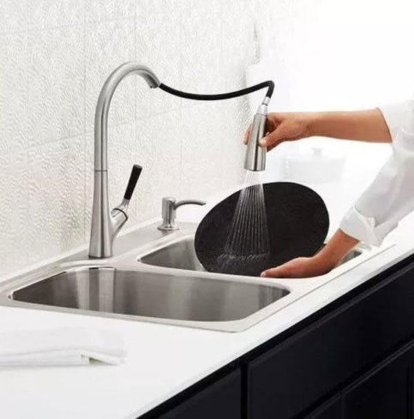 Высокий смеситель для кухни Jacob Delafon Malleco E562-VS однорычажный, с аэратором, с двухрежимным выдвижным изливом, монтируемый в одно отверстие.