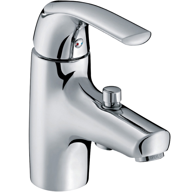 Смеситель с фиксированным изливом, монтируемый в одно отверстие, с округлыми формами и эргономичной рукояткой отлично подходит для различных интерьеров ванной комнаты.