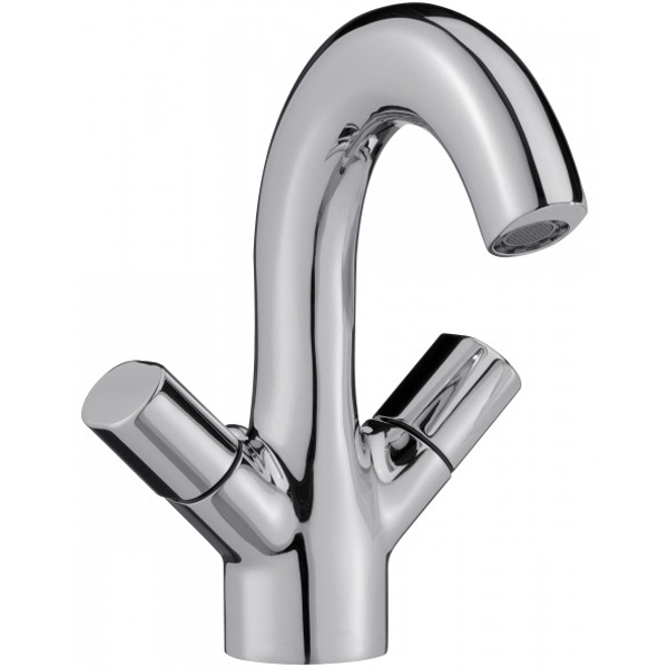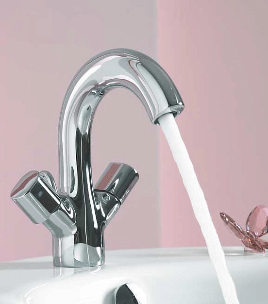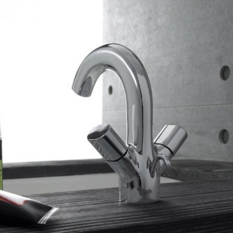 Двухвентильный смеситель с фиксированным изливом, монтируемый в одно отверстие, превосходно сочетается в интерьере любой ванной комнаты в современном стиле своими гармоничными овальными формами конструкции.