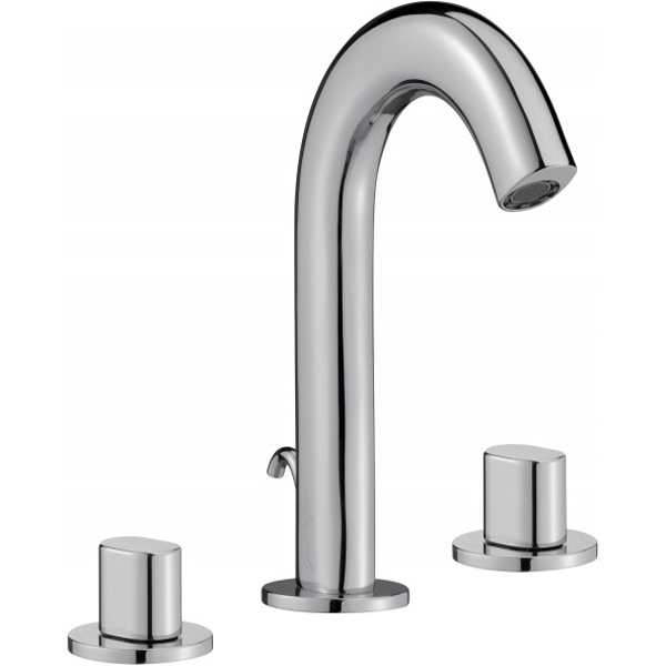 Двухвентильный смеситель с фиксированным изливом, монтируемый в три отверстия, превосходно сочетается в интерьере любой ванной комнаты в современном стиле своими гармоничными овальными формами конструкции.