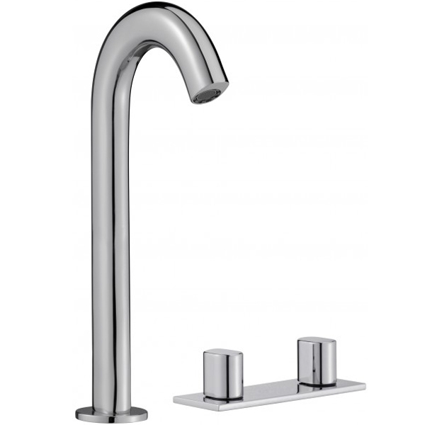 Двухвентильный смеситель с фиксированным изливом, монтируемый на три отверстия, превосходно сочетается в интерьере любой ванной комнаты в современном стиле своими гармоничными овальными формами конструкции.