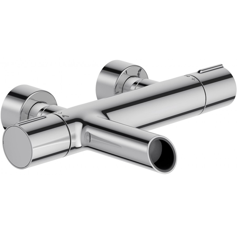 Смеситель с фиксированным изливом, монтируемый в два отверстия, отлично подходит для различных интерьеров ванной комнаты в современном стиле и отличается округлыми формами наряду с четкими краями.