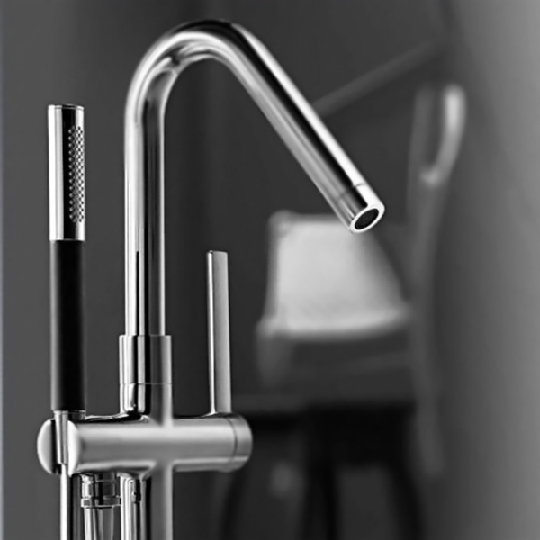 Напольный смеситель для ванны Jacob Delafon Stillness E97344-CP однорычажный, с аэратором, с душевым гарнитуром, монтируемый в одно отверстие.