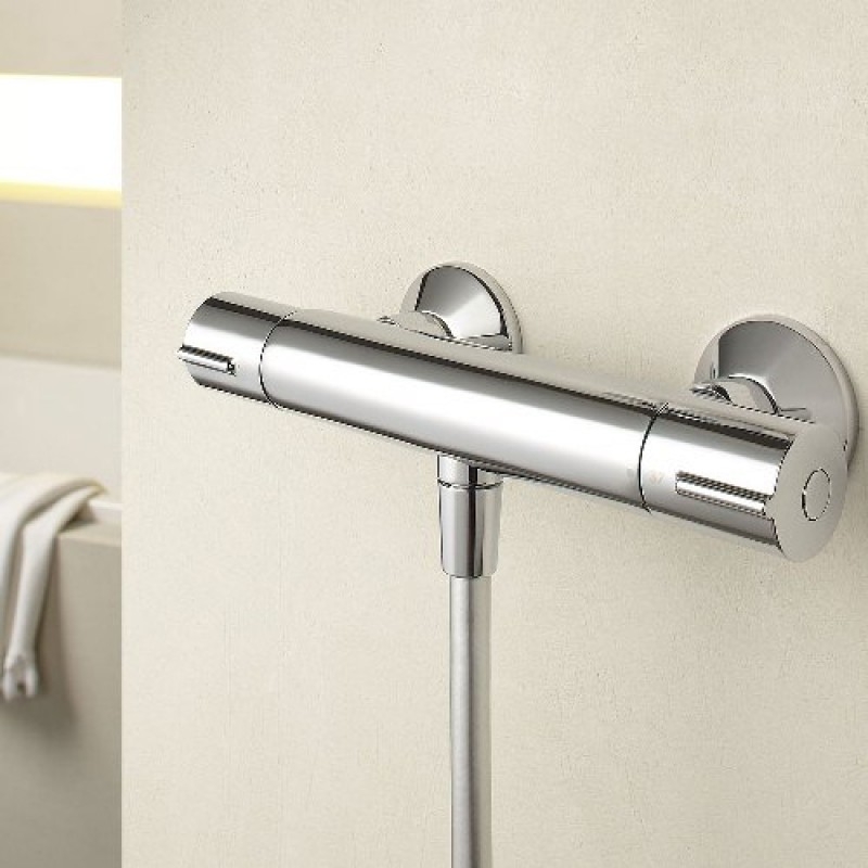 Смеситель, монтируемый в два отверстия, отлично подходит для различных интерьеров ванной комнаты в современном стиле.