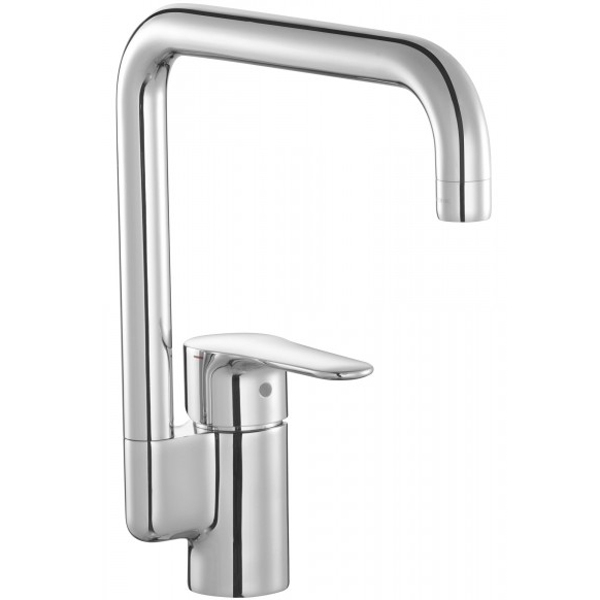 Однорычажный смеситель с поворотным изливом, монтируемый в одно отверстие, отлично подходит для различных интерьеров кухни в современном стиле.