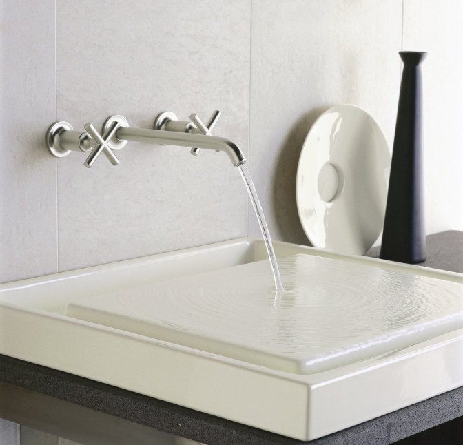 Двухвентильный смеситель с фиксированным изливом, монтируемый в три отверстия, отлично подходит для различных интерьеров ванной комнаты благодаря оригинальному дизайну.