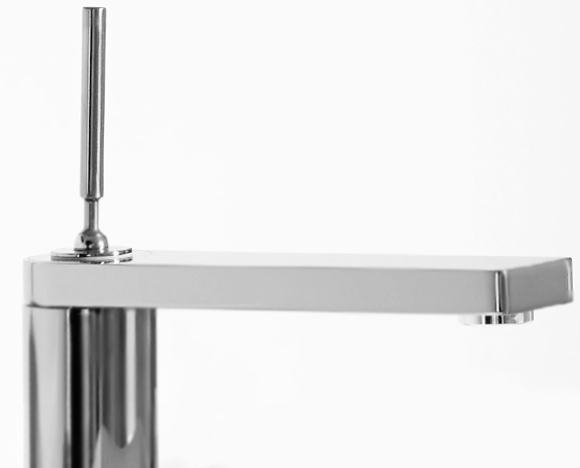 Управление донным клапаном: рычаг на корпусе смесителя.