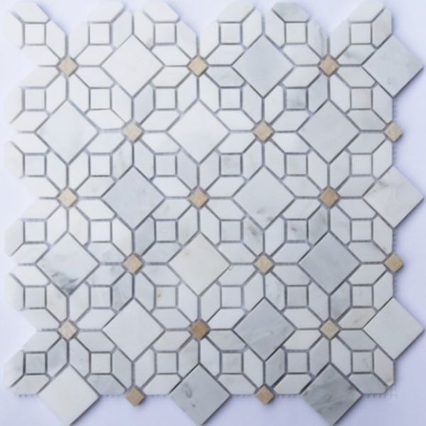 Каменная мозаика Orro Mosaic Stone Camomile (Oriental Whtie+AnticGold) Pol. 30,5х30,5 см применяется для облицовки плавательных бассейнов, турецких бань и внутренней отделки помещений. Благодаря большой вариативности форматов, фактур, расцветок она может использоваться для оформления как частных, так и общественных интерьеров, предоставляя огромные возможности для реализации уникальных авторских решений. В упаковке 11 штук общей площадью 1,023 м2.
