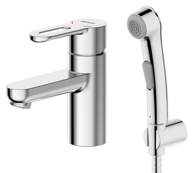 Смеситель для раковины Bravat Stream-D F137163C-1 с гигиеническим душем. Корпус латунь. Ручка цинк. Керамический картридж Kerox 35 мм. Гибкая подводка 450 мм M10-G1/2 SS 2 шт. Шланг 1500 мм PVC. Лейка из пластика ABS. Аэратор Neoperl. Поток воды: смеситель 8,3 л/мин; лейка 4 л/мин при давлении 0.3 MPa.