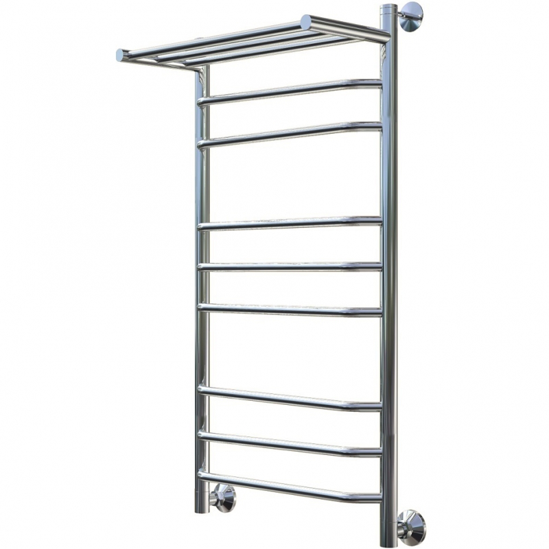 Водяной полотенцесушитель Тругор Браво 3 П НП 100x50 см с полкой, цвет хром. Используется для просушки влажных вещей и полотенец, а также дополнительного обогрева помещения. Изготовлен из пищевой нержавеющей трубы марки AISI 304, которая отличается стойкостью к высоким температурам и образованию коррозии, выдерживает значительные перепады давления.