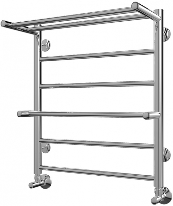 Водяной полотенцесушитель Terminus Анкона П6 500x591 4670030723093 с полкой, с нижним подключением. Для производства полотенцесушителя используется только высококачественная нержавеющая сталь марки AISI 304L с высоким содержанием легирующих элементов, Ni и Cr, это позволяет изделиям сохранять стойкость к агрессивным коррозийным средам, что существенно продлевает срок их эксплуатации. Толщина стенки используемой трубы не менее 2 мм, это обеспечивает 10-ти кратный запас прочности, труба устойчива к резким перепадам давления в системе водоснабжения!