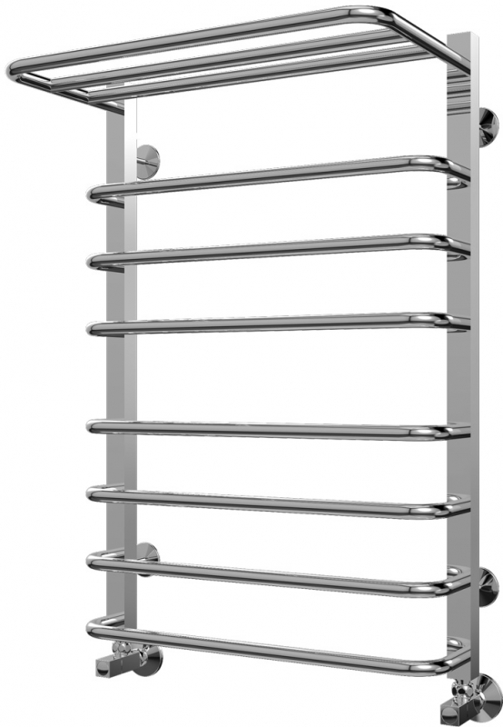 Водяной полотенцесушитель Terminus Арктур П8 500х796 4620768886430 с полкой, с нижним подключением. Для производства полотенцесушителя используется только высококачественная нержавеющая сталь марки AISI 304L с высоким содержанием легирующих элементов, Ni и Cr, это позволяет изделиям сохранять стойкость к агрессивным коррозийным средам, что существенно продлевает срок их эксплуатации. Толщина стенки используемой трубы не менее 2 мм, это обеспечивает 10-ти кратный запас прочности, труба устойчива к резким перепадам давления в системе водоснабжения!