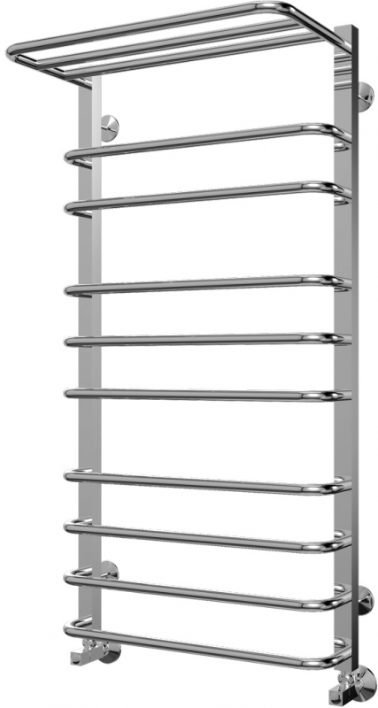 Водяной полотенцесушитель Terminus Арктур П10 500х1031 4620768886584 с полкой, с нижним подключением. Для производства полотенцесушителя используется только высококачественная нержавеющая сталь марки AISI 304L с высоким содержанием легирующих элементов, Ni и Cr, это позволяет изделиям сохранять стойкость к агрессивным коррозийным средам, что существенно продлевает срок их эксплуатации. Толщина стенки используемой трубы не менее 2 мм, это обеспечивает 10-ти кратный запас прочности, труба устойчива к резким перепадам давления в системе водоснабжения!